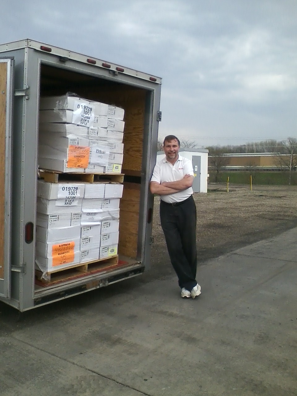 Jonathan Eklof, an administrator at Truth Ministries (a collection of small churches in Minnesota that reaches out to about 200 low-income families to provide food and supplies), didn’t originally intend to visit Grab Bag on the day I was interviewing. He had come to pick up a load of five pallets of garbage can liners and had already pretty much maxed out his weight limit for his truck.