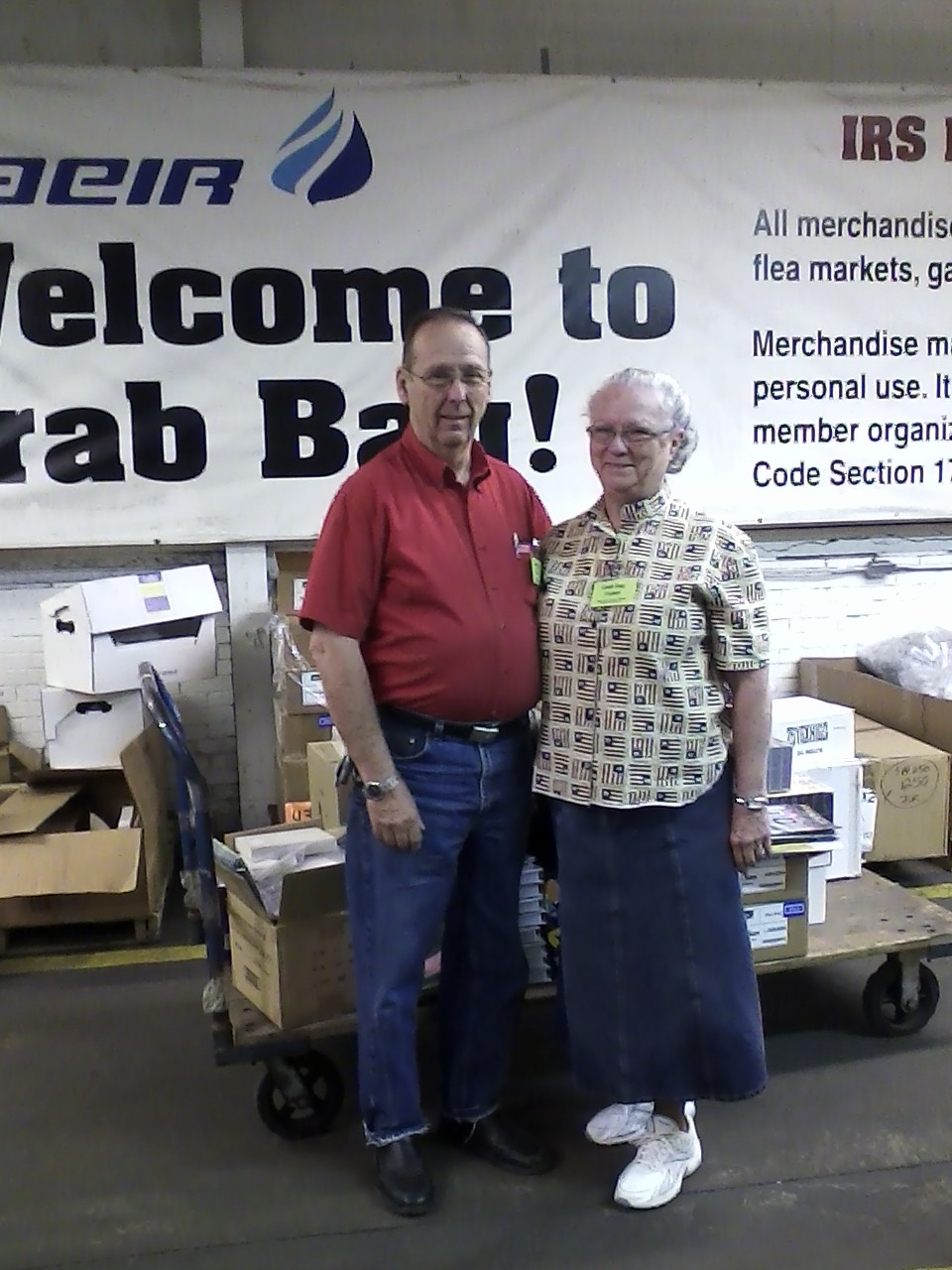 Paul and Marsha Troese, members of Illinois District United Pentecostal Church in Naperville, pose with their Grab Bag findsTruth Ministries originally joined NAEIR in 1991, but had to discontinue their membership a few years ago due to budget concerns. They joined up again last year and have been coming to Grab Bag routinely since.